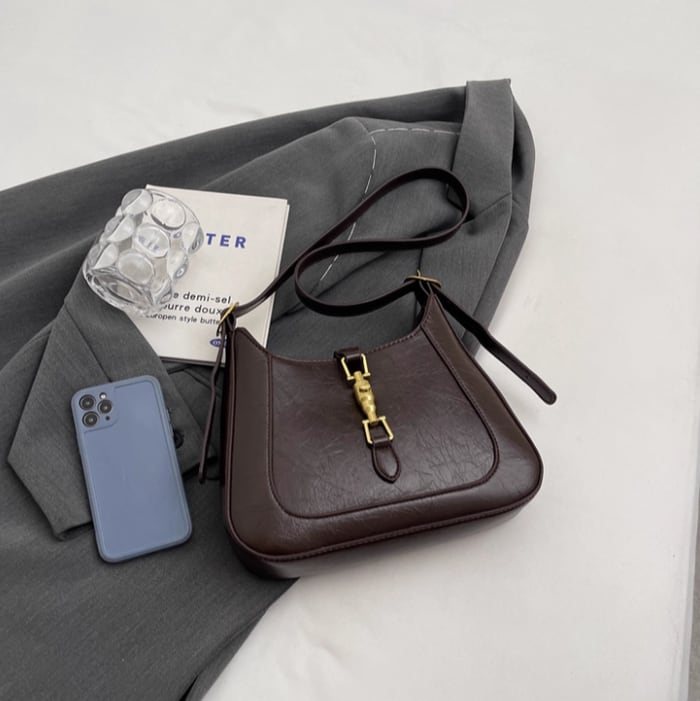 クラシカルなムード漂う、ゴールドビットが印象的なショルダーバッグ。
