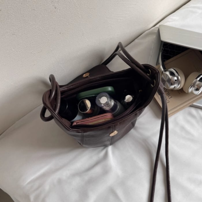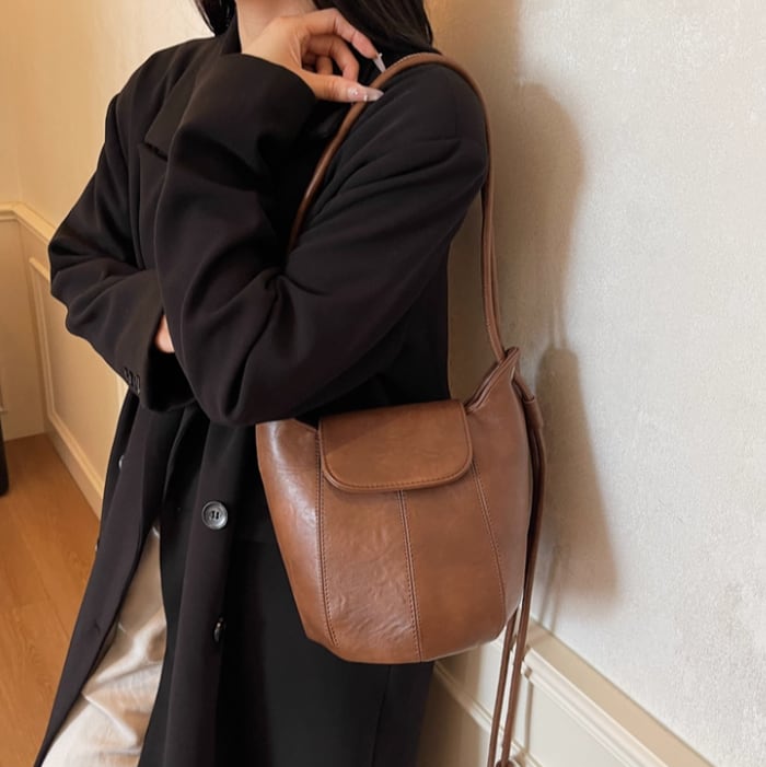 ほんのりヴィンテージ感のあるPU素材が装いにこなれ感を添え、普段のコーデをさりげなくアップデートしてくれます。