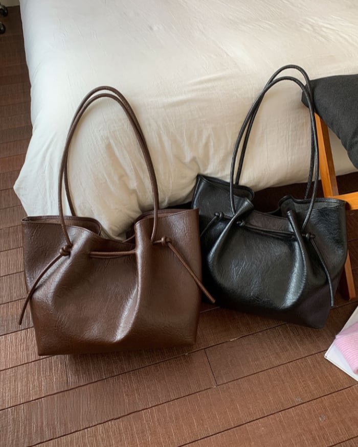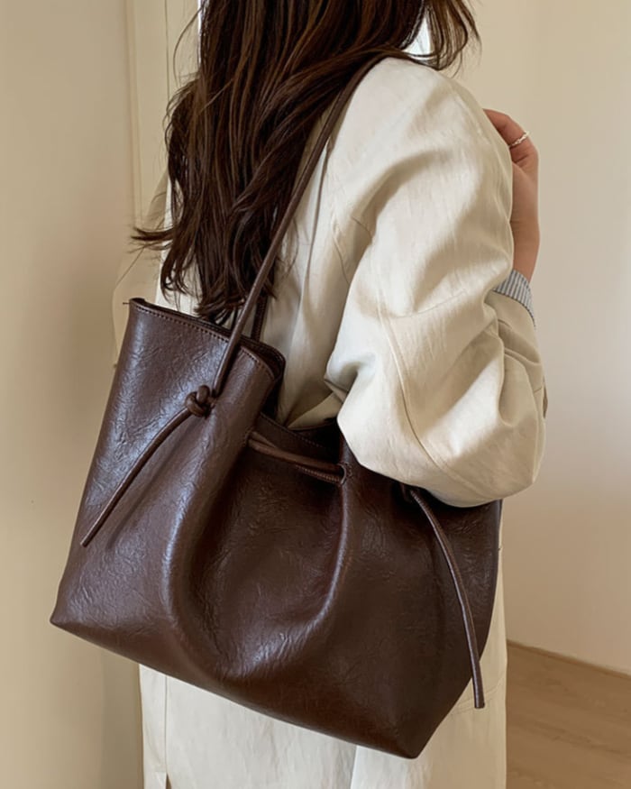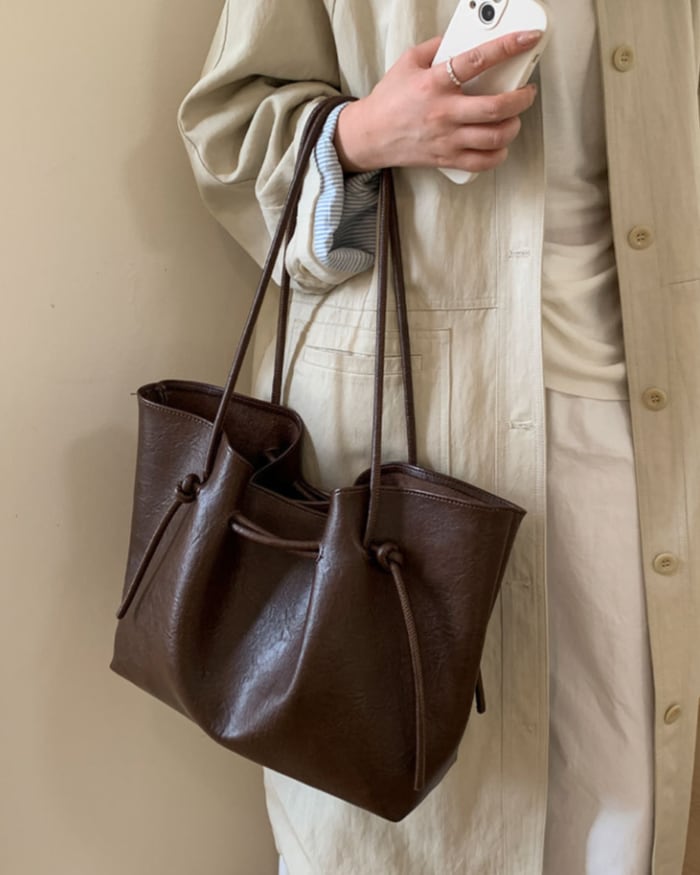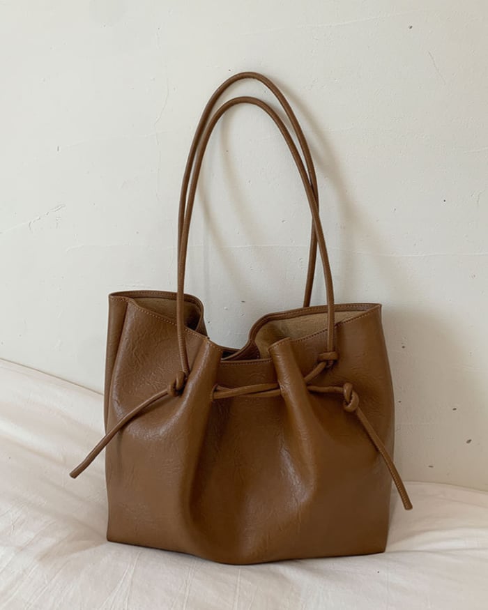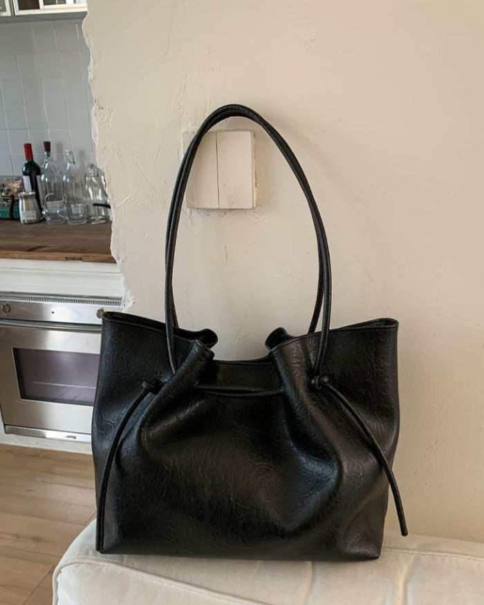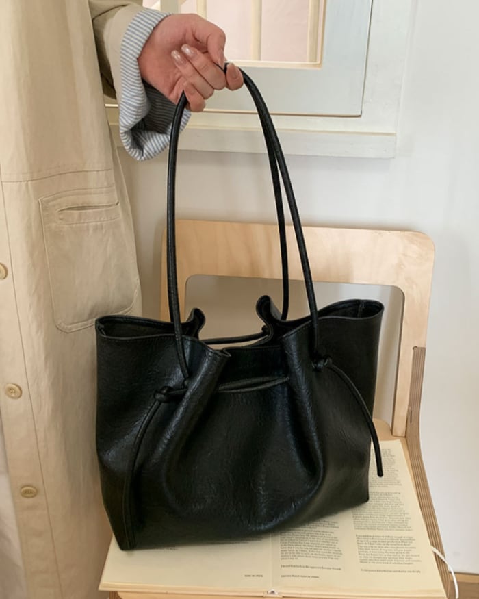 サイドのノットデザインと、タックによって生まれる立体感が印象的なトートバッグ。
