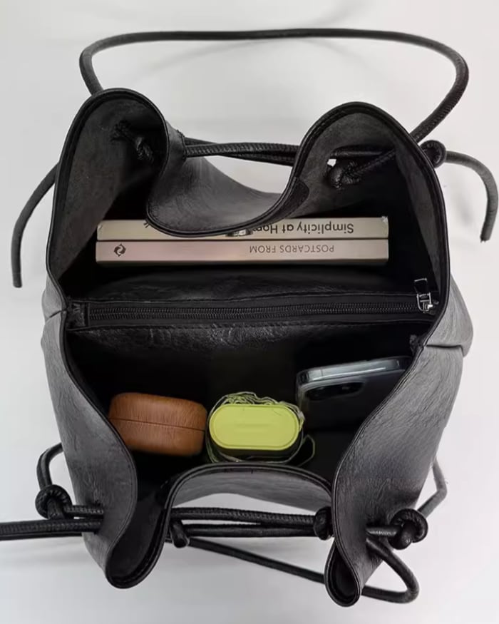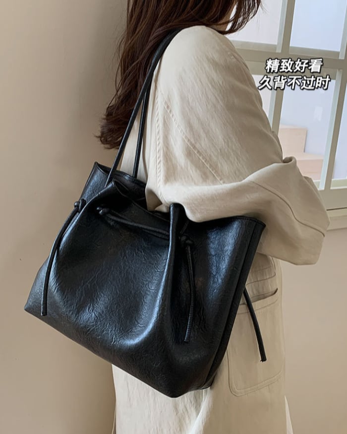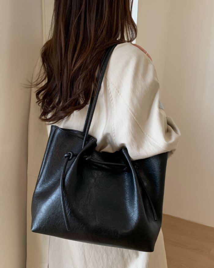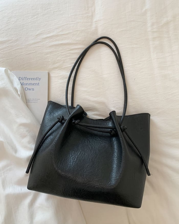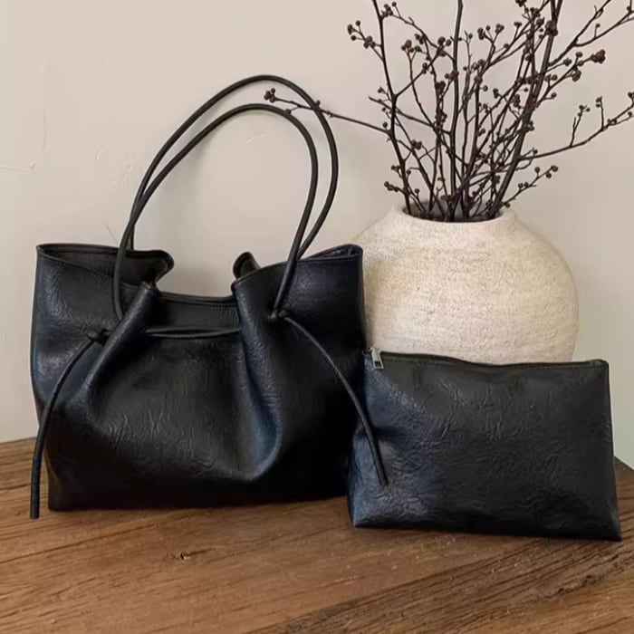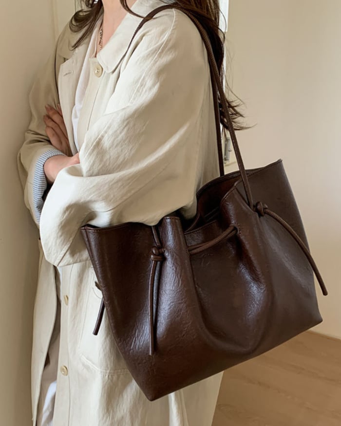 サイドのノットデザインと、タックによって生まれる立体感が印象的なトートバッグ。