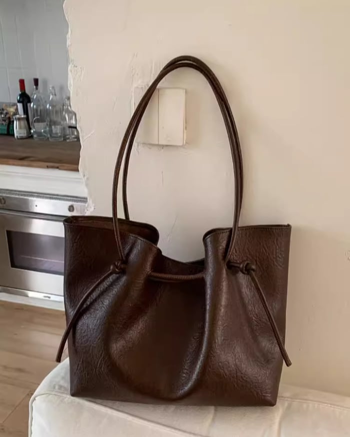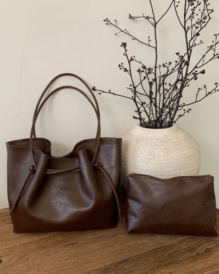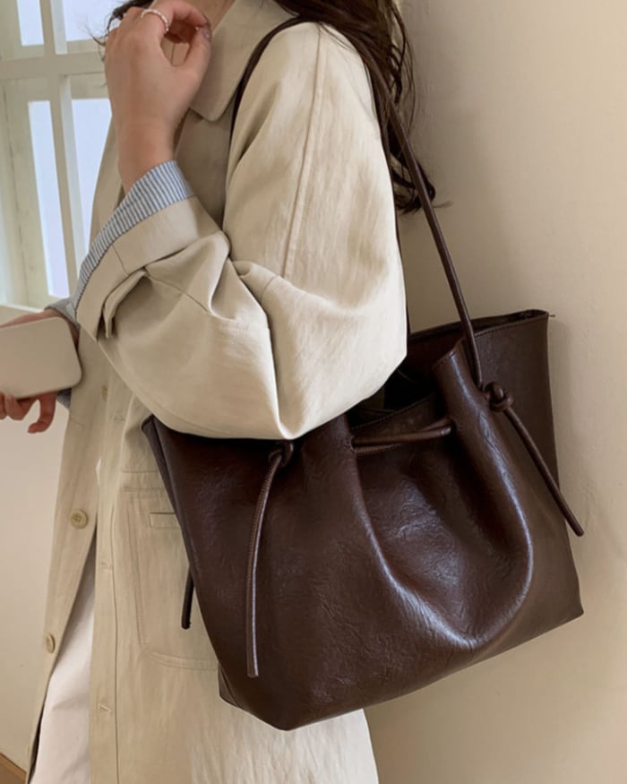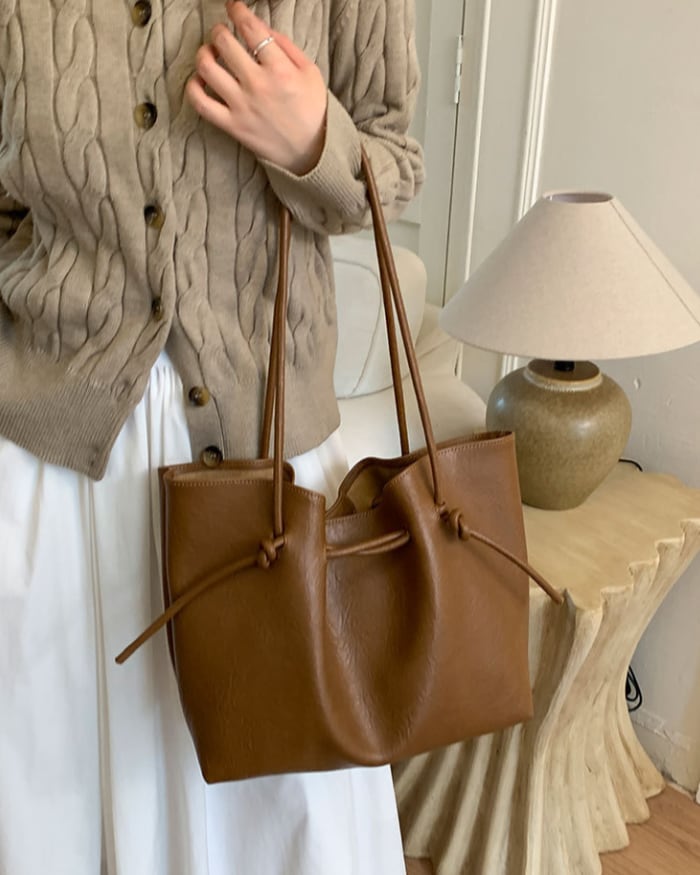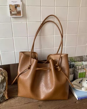 サイドのノットデザインと、タックによって生まれる立体感が印象的なトートバッグ。