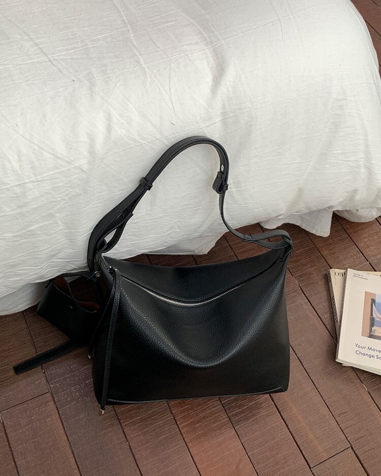 やわらかなシボ感のあるフェイクレザーが魅力のワンショルダーバッグ。