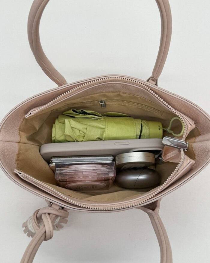 開閉はファスナー仕様で、中身が見えにくく安心感のある使い心地。