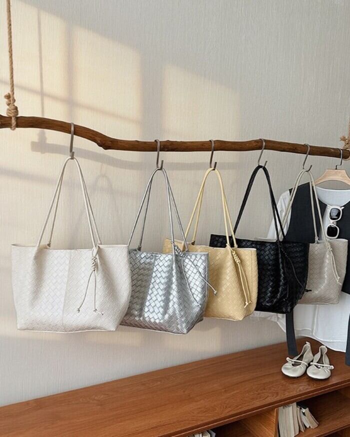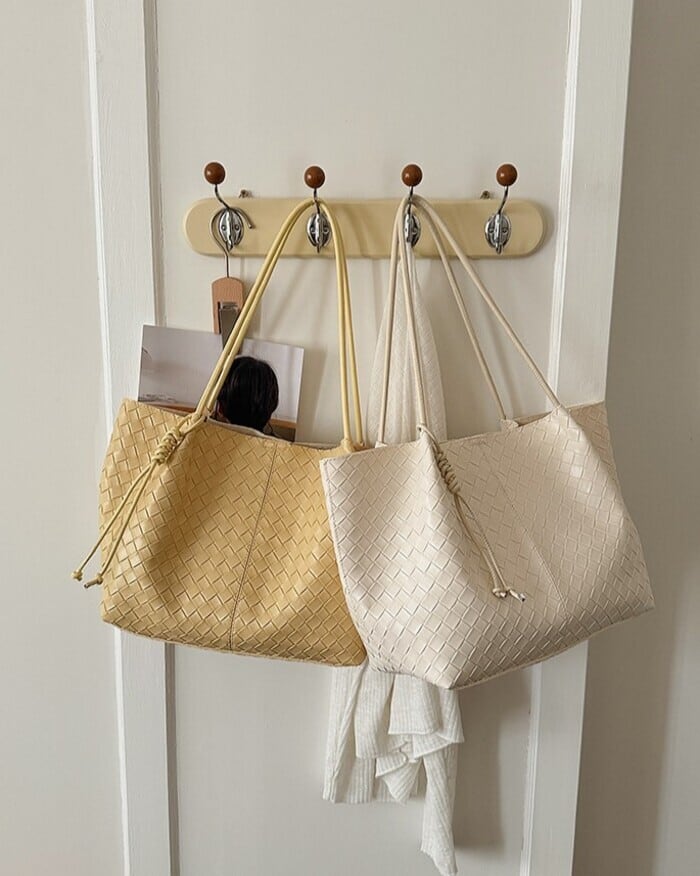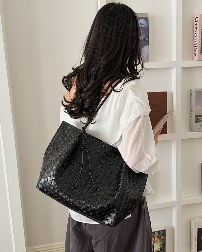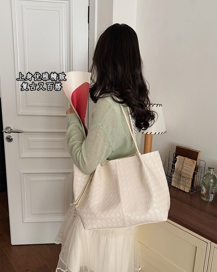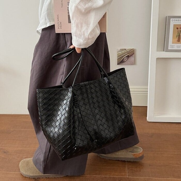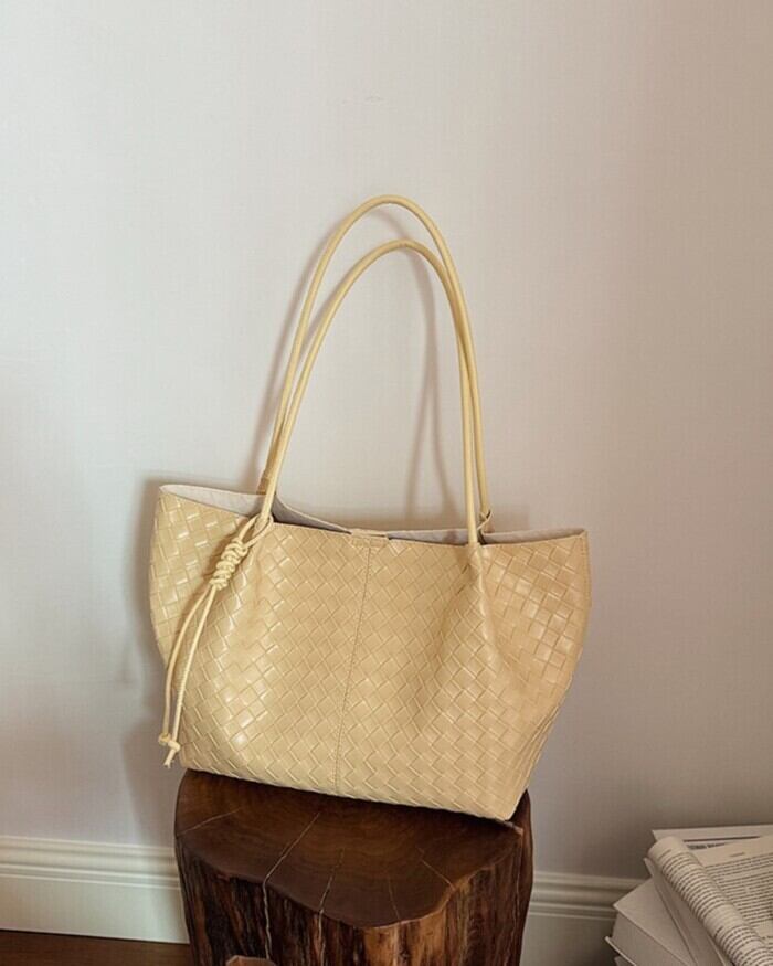 編み込みのような立体感を表現した、型押しデザインのトートバッグ。