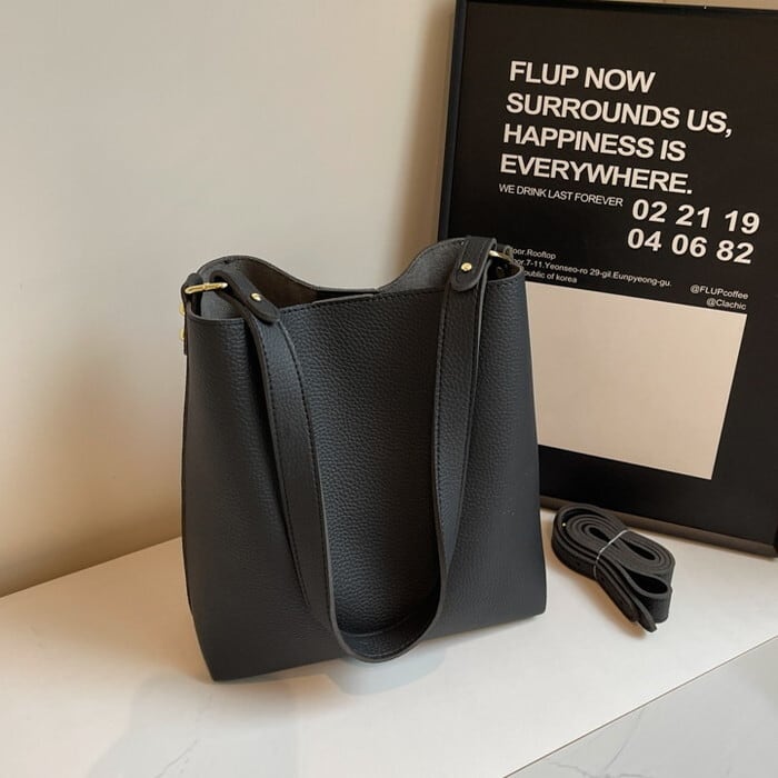 シボフェイクレザーバケットバッグ 240821