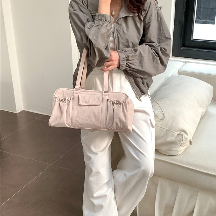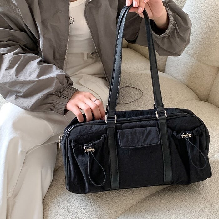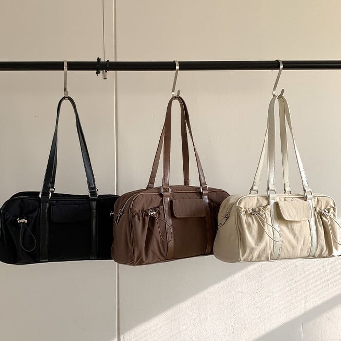□サイズ:縦18cm、横37/31cm、マチ10.5cm、ハンドル62cm(調整不可)