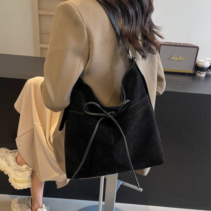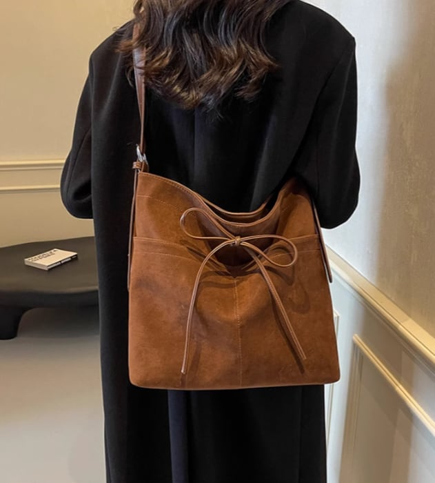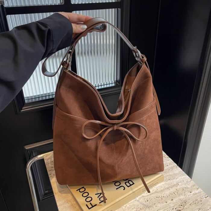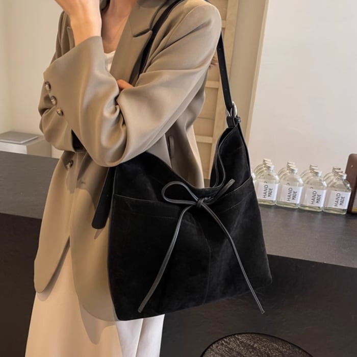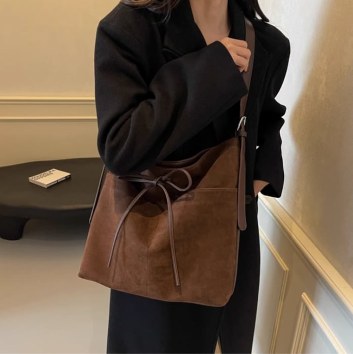 柔らかなスエード素材が上品な印象で、季節感たっぷりのアイテムです。